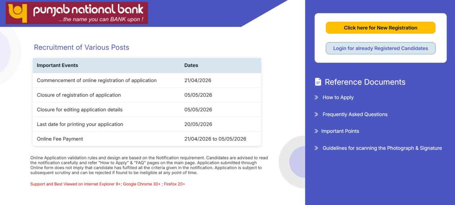 Application ModeOnline only through the Punjab National Bank website.